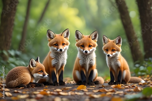 fox, red fox, wildlife, animal, nature, forest, autumn, leaf, digital artwork, illustration, cute, adorable, mammal, cartoon, nature scene, fall, forest floor, artwork, autumn leaf, wild animal, three, red, kit, digital, lush, setting, surrounded