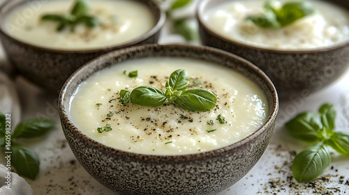 food, soup, creamy, receipe, cooking, comfort food, delicious, healthy eating, home cooking, culinary, food photography, closeup, topview, gastronomy, culinary arts, appetising, dinner, lunch, white background, color palette, copy space, bowl, basil, pepper, texture, comfort, warmth, eatery, catering