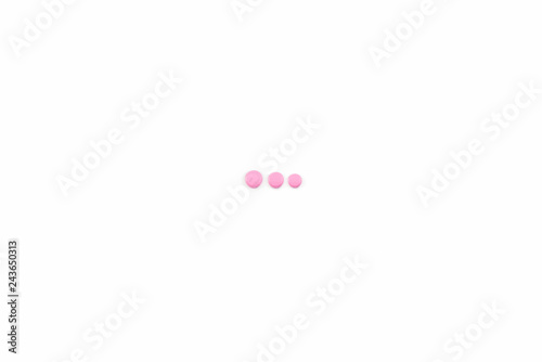 three dots made from pink pills on the white background. concept