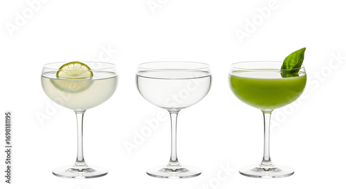 cocktail, glasses, gin, drink, alcohol, beverage, bar, liqueur, lime, basil, ingredient, garnish, refreshment, tasty, luxury, style, classic, party, celebration, night, club, eatery, cold, alcoholic, closeup, detail, aroma, favor, studio, shot, nobody, object, view, green, clear, fresh, sour, sweet, herb