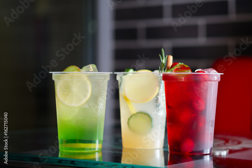 cherry, mint, cinnamon, citrous, cucumber, lemon, kiwi, take away, cocktail, drink, lemonade, green, cold, refreshment, three, glasses, beverage, summer, fruit, fresh, table, brick, background, ice, cool, juice, healthy, liquid, lifestyle, juicy, refreshing, ingredient, nobody, slice, soda, vegetable, diet, sweet, red, yellow, bar, party, natural, organic, glacé, nature, portion, tonic