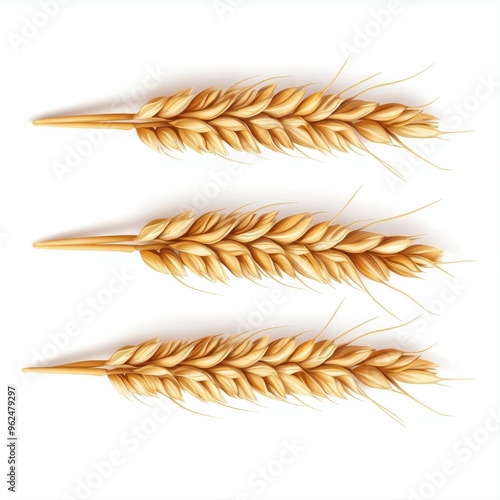 Three golden wheat stalks arranged in a row on a white background.