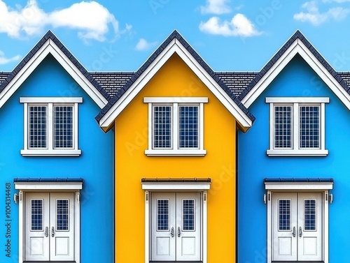 mortgage, residence, rent, property, residential, investment, real, estate, door, development, paint, structure, window, apartment, colours, ownership, roof, village, house, facades, rooftop, different, family, row house, retro, new, architectural, chimney, home, space, white, modern, tallest, urban, affordable, red, town, exterior, blue, outdoors, sky, balcony, design, style, yellow, wood, green, bright, construction