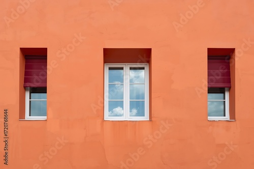 window, window, building, facades, orange, wall, architecture, exterior, modern, design, geometric, pattern, symmetry, minimalist, simple, clean, residential, house, apartment, urban, city, structure, detail, texture, colours, vibrant, bright, contrast, red, blind, shutter, frame, glasses, daylight, natural, light, background, surface, contemporary, straight, line, composition, architectural, minimal