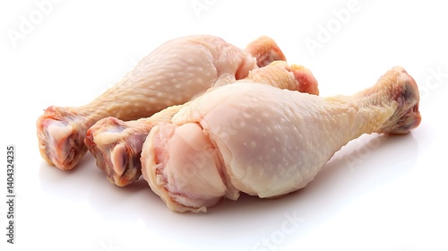 Three Raw Chicken Drumsticks on White Background