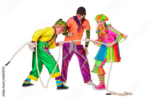 clown, rope, isolated, nose, humor, comic, carnival, circus, background, children, colours, colourful, colours, colourful, comedian, copy space, costume, entertainer, entertainment, enthusiasm, expression, eye, facial, fun, girl, happy, party, people, pointing, rainbow, red, screaming, shouting, smile, three, white, white space, young