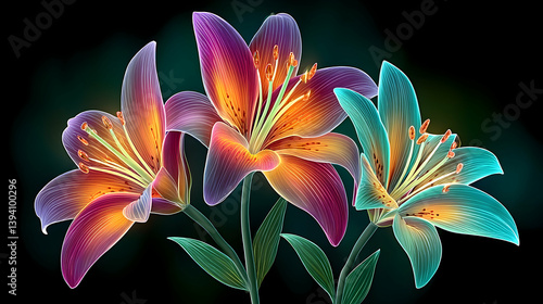 lily, flower, bloom, blossom, flower petals, vibrant, colourful, colours, neon, glow, aglow, bright, dark, background, art, illustration, digital, graphic, design, beauty, nature, floral, plant, botany, summer, spring, fantasy, surreal, magical, aesthetic, elegant, delicate, romantic, peace, serenity, calmness, harmony, alive, energy, light, shadow, artwork, image, photo, visual, stunning, gorgeous
