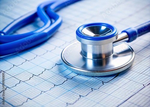 Tilt-Shift ECG Heart Chart with Blue Stethoscope - Medical Insurance Background