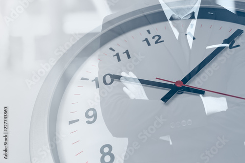 Time clock with business man for working hours or waiting concept