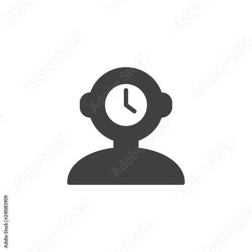 Time management vector icon. filled flat sign for mobile concept and web design. Clock head, human mind simple solid icon. Symbol, logo illustration. Pixel perfect vector graphics