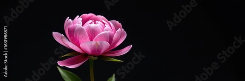 Timelapse of a pink peony flower blooming against a stark black background, showcasing its delicate petals unfolding, black background, close up, elegance