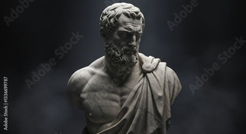 philosopher, statue, marble, ancient, wisdom, sculpture, art, historical, classical, dramatic, thought, stoic, greek, roman, powerful, intellect, cognition, strength, mystery, greyscale, stone, museum, mythology, timeless, serious, artistic, scholar, thinker, traditional, antique, masterpiece