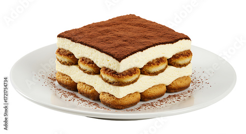 Tiramisu Dessert Square A Decadent Delight of Coffee and Cocoa on a White Plate