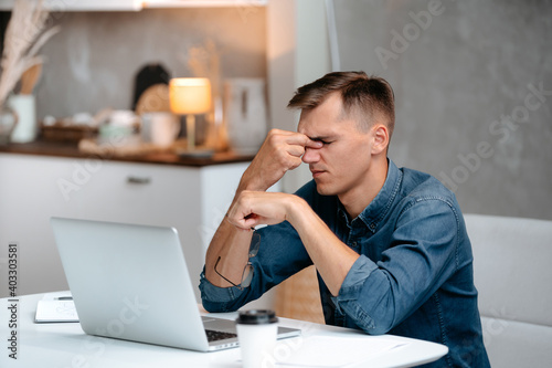 man, laptop, business, technology, sleepy, cyberspace, computer, home, quarantine, cephalalgia, fatigue, symptom, flu, adult, working, communication, problem, frustration, indoor, notebook, stress, exhaustion, male, concentration, overworked, serious, sitting, work, modern, worried, lifestyle, house, background, web, caucasian, online, using, hot drink, alone, mail, ambition, career, confused, document, emotion, look, motivation, occupation, paperwork