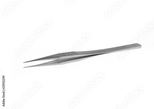 Titanium tweezers isolated on white background. Stainless steel pincers or forceps closeup. Elegant high quality pincette