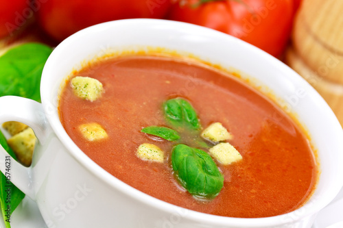 soup, tomato soup, tomatoes, vegetable, delicious, slim, basil, vertical, mill, pepper grinder, decoration, trace element, eatery, enzyme, refreshment, food, gastronomy, healthy, herb, toasted, kitchen, feel, vitamin, onion