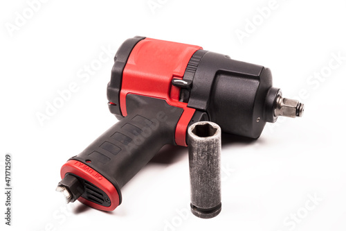 tools, impact pneumatics for unscrewing nuts in the car. on a white background. the color is red