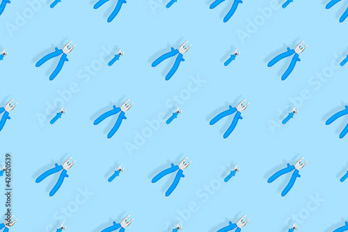 Tools seamless pattern. Background made of tools, pliers and an adjustable wrench.