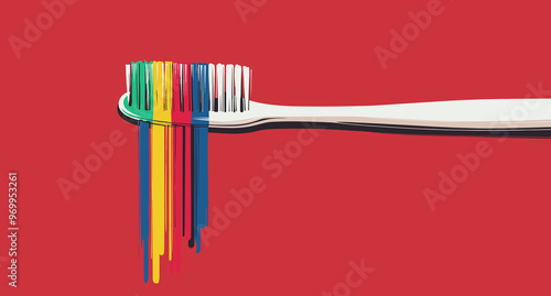 Toothbrush with Dripping Paint. Creative Illustration of Oral Hygiene and Art.