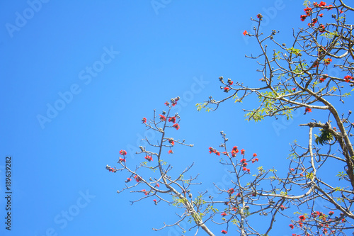 tree, sky, tree branch, flower, fresh, blue, high, natural, red, nature, garden, background, top, tropical, food, blossom, spring, detail, space, asia, cooking, inside, herb, huge, thai, kapok, green, summer, design, plant, 1, leaf, element, tree, season, blooming, outdoors, old, beautiful, eat, romantic, bright, day, sunshine, siam