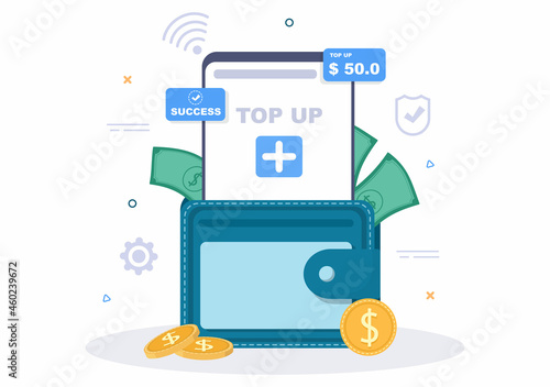Top Up Add Your Money Balance Vector Illustration on Mobile Phone Device For Financial Application, E-Wallet or Digital Currency Concept