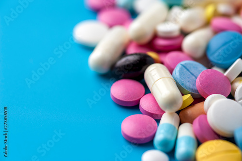 Top view - colorful medical pills and drugs.