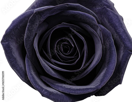 Top View of Black Rose Head with Petals Spiraling Outward, Dramatic Center Focus, Transparent Background PNG