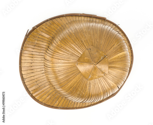 Top view of brown Hat,Old hat made of woven bamboo