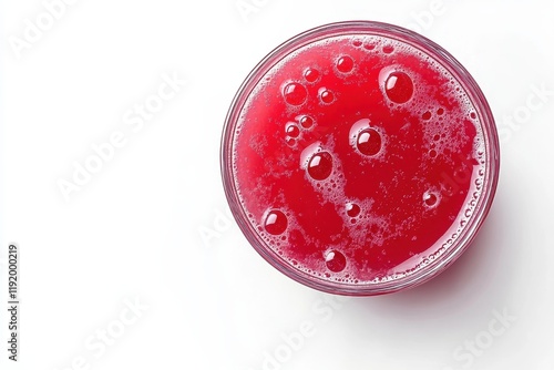 Top view of bubbly red juice in glass. Perfect for blogs, websites, or beverage ads needing a refreshing image.