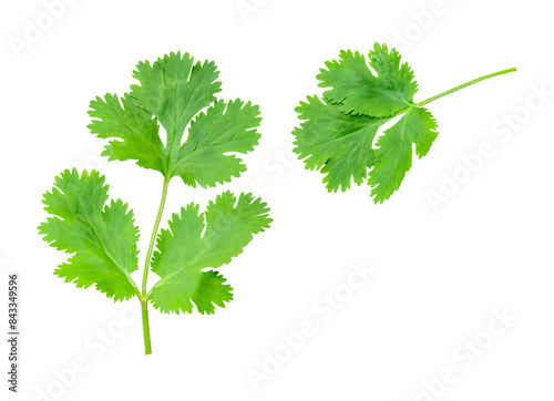 Top view set of fresh green coriander or Chinese parsley leaves isolated on white background with clipping path