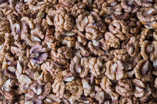 top view texture of walnut kernels. Healthy nutrition, natural protein. Vegetarian food