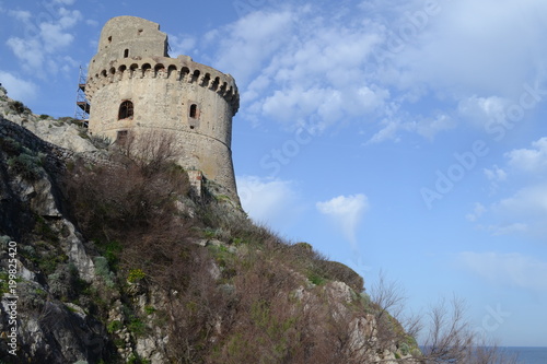 tower, turret, fort, reef, sea, crenelation, rock, stone, brick, loophole, window, debris, mediterranean, cape, heaven, cloud, sabaudia, italy, travel, tour tourism, archaeology, vacation