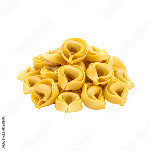 Tortellini pasta pile on white transparent background