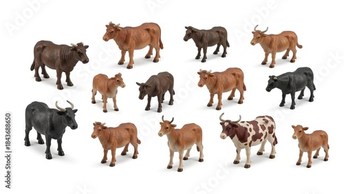 cow, toy, toy, figurine, brown, black, white, farm, mammal, plastic, horn, cattle, animal, domestic, figure, farm animal, model, beef, miniature, play, replica, standing, isolated, group, collection, art, sculpture, bovine, dairy, exhibit, display, pasture, ranch, herd, graze, nature, rural, agriculture, countryside, childhood