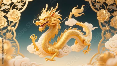 Traditional Chinese Dragon in Spring Festival Visual Poster