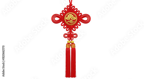 Traditional Chinese Knot Ornament with Golden Cloud Emblem