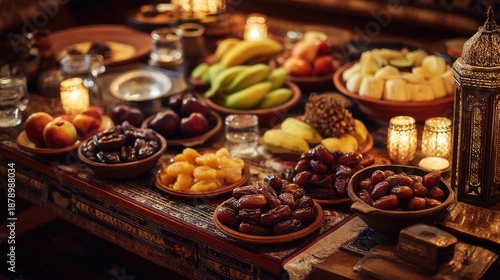 diverse, oneness, gathering, sharing, warmth, feast, dining, ambience, joy, hospitality, aesthetic, family, fruit, plate, banquet, ritual, seasonal, wholesome, vibrant, comfort, date, herbal, dish, bowl, set, tradition, festive, ramadan, savoury, middle eastern, lantern, authentic, celebration, decor, evening, water, culinary, culture, sweet, food, fresh, meal, table, serving
