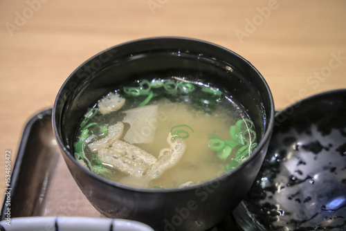 Traditional Japanese Miso Soup with Tofu and Green
