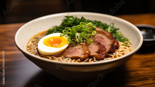 japanese, ramen, noodle, soup, pork meat, egg, asian, lunch, dinner, hot, comfort food, traditional, broth, eatery, authentic, bowl, scallion, hearty