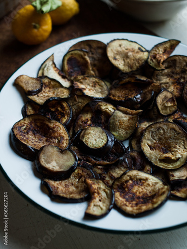 healthy lifestyle, mediterranean, tomatoes, bean, mushroom, capsicum, sunflower-seed, lemon, cucumber, aubergine, whole food, low light, natural light, artisan, specialist, dark, rustic, homemade, farm, wood, home, lifestyle, dish, nourishment, salad, topview, plate, table, dinner, wooden, healthy, food, meat, meal, epicure, pork meat, white, cookery
