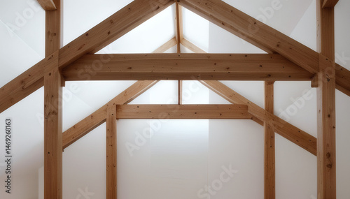 Traditional Wooden Roof Structure of a House with Visible Beams and Natural Texture