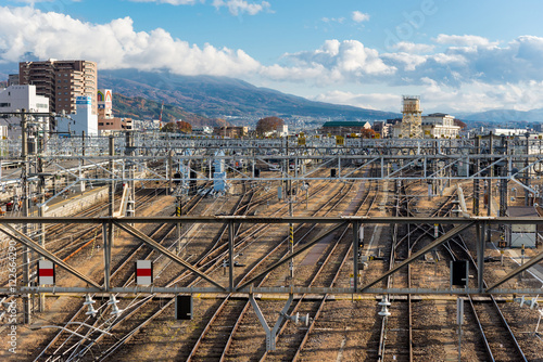 Train track line in Matsumoto Station, Japan