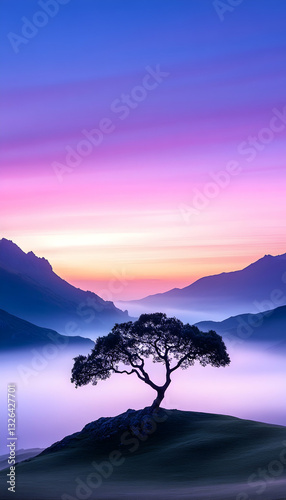 sunrise, mountain, tree, landscape, nature, scenic, calm, peaceful, foggy, misty, vibrant, colourful, sky, cloud, hill, vale, tranquil, serene, beauty, view, photo, travel, inspiration, dreamy, amazing, quiet, alone, freedom, escape, adventure, explore, hiking, forest, grass, horizon, colours, light