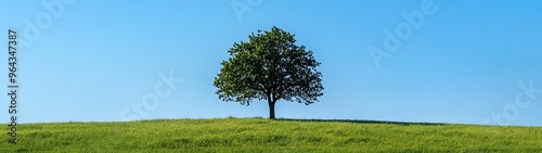 single, tree, green, grass, blue, sky, panoramic, banner, nature, tranquil, serene, peaceful, landscape, copy, space, outdoors, scenic, beauty, clear, day, scene, meadow, view, rural, countryside, idylli, setting, fresh, air, environmental, relaxation, calmness, simplicity, horizon, mindfulness