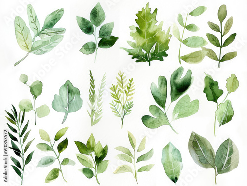 Tranquil Watercolor Forest Elements on White with Soft Natural Tones