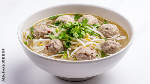 transparent kuay teow nam - thai noodle soup with pork and herbs