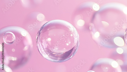 Transparent Pink Bubbles Floating on Soft Light Blurred Background