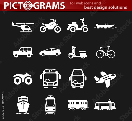 icon, symbol, element, design, vector, helicopter, motorcycle, moped, boat, jeep, car, scooter, bicycle, bus, plane, ship, tram