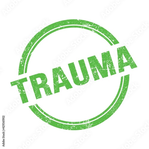 TRAUMA text written on green grungy round stamp.
