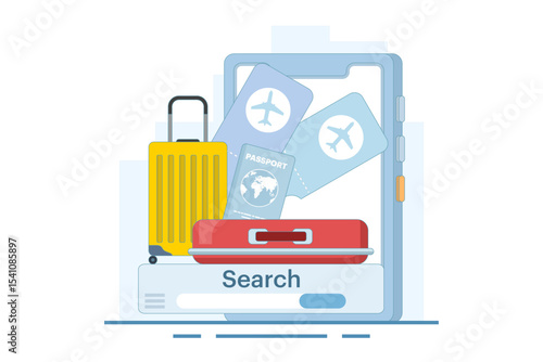 flight, search, searching, journey, trip, illustration, baggage, three-dimensional, fly, plane, planning, ticket, tour, transportation, earth, aeroplane, phone, booking, business, holiday maker, map, minimal, online, payment, plan, poster, realistic, render, buy, camera, mobile, smartphone, voyage, baggage, suitcase, advertising, america, application, class, clip art, collage, commercial, compass, coupon, elegant, exchange, global, transport, globe